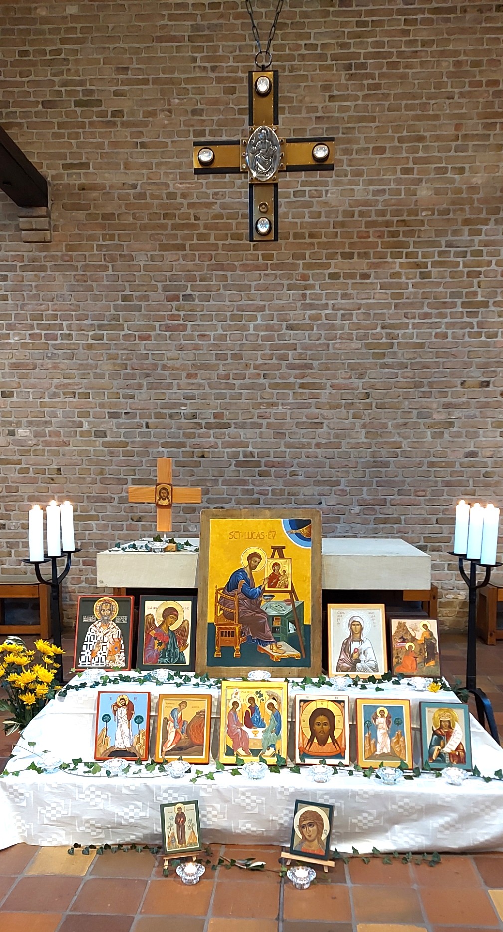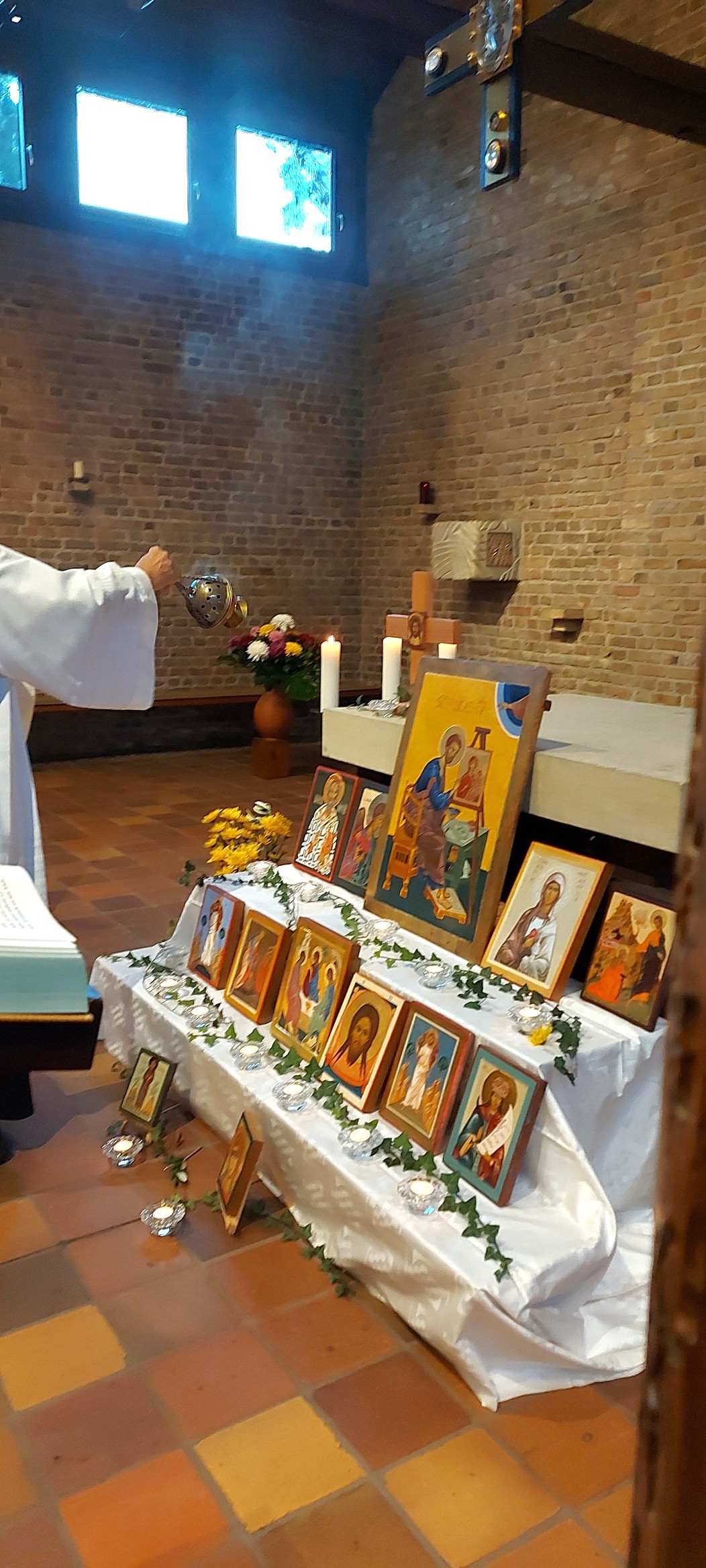 Nach zehn Tagen intensiver Arbeit konnten in der Veper am Abend die im aktuellen Ikonen-Schreibkurs entstandenen Ikonen gesegnet werden.