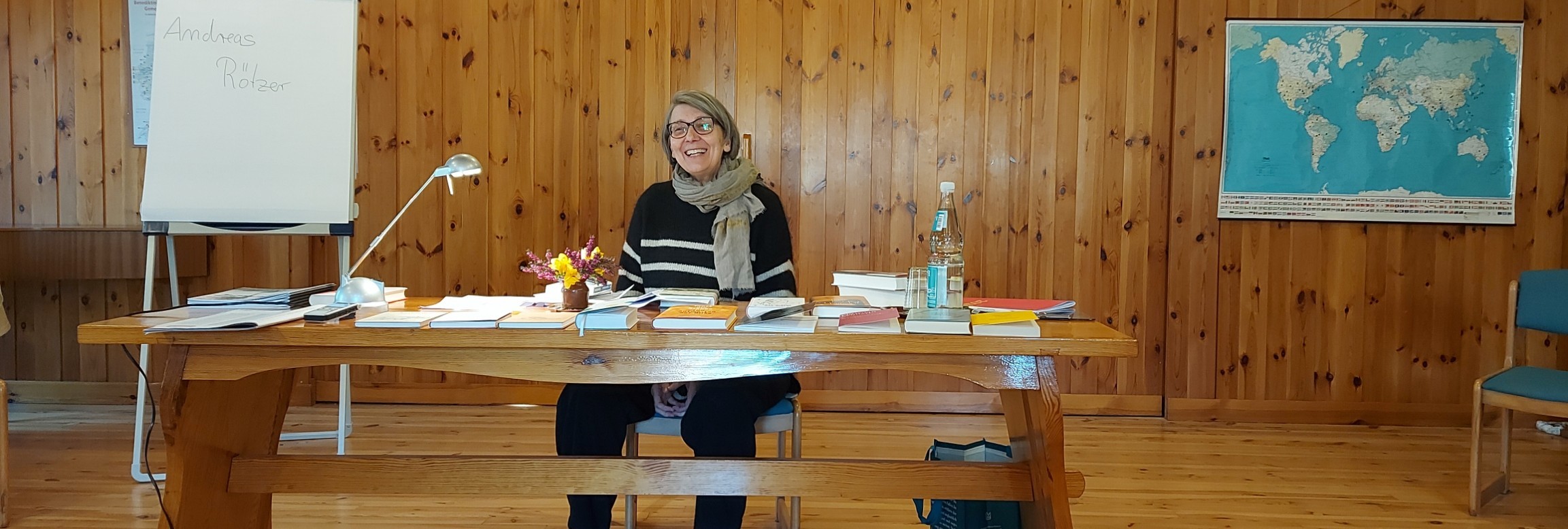 Unsere Oblatin Sinje H., Buchhändlerin in Hamburg nahm uns mit auf die Spurensuche nach spirituellen Aspekten in der zeitgenössischen Literatur. Drei Tage lang bekamen wir Einblicke in moderne Lyrik, in Prosa und auch in verschiedene Sachbücher. Das Ergebnis der profunden Recherchen unserer Referentin begeisterte alle Schwestern.